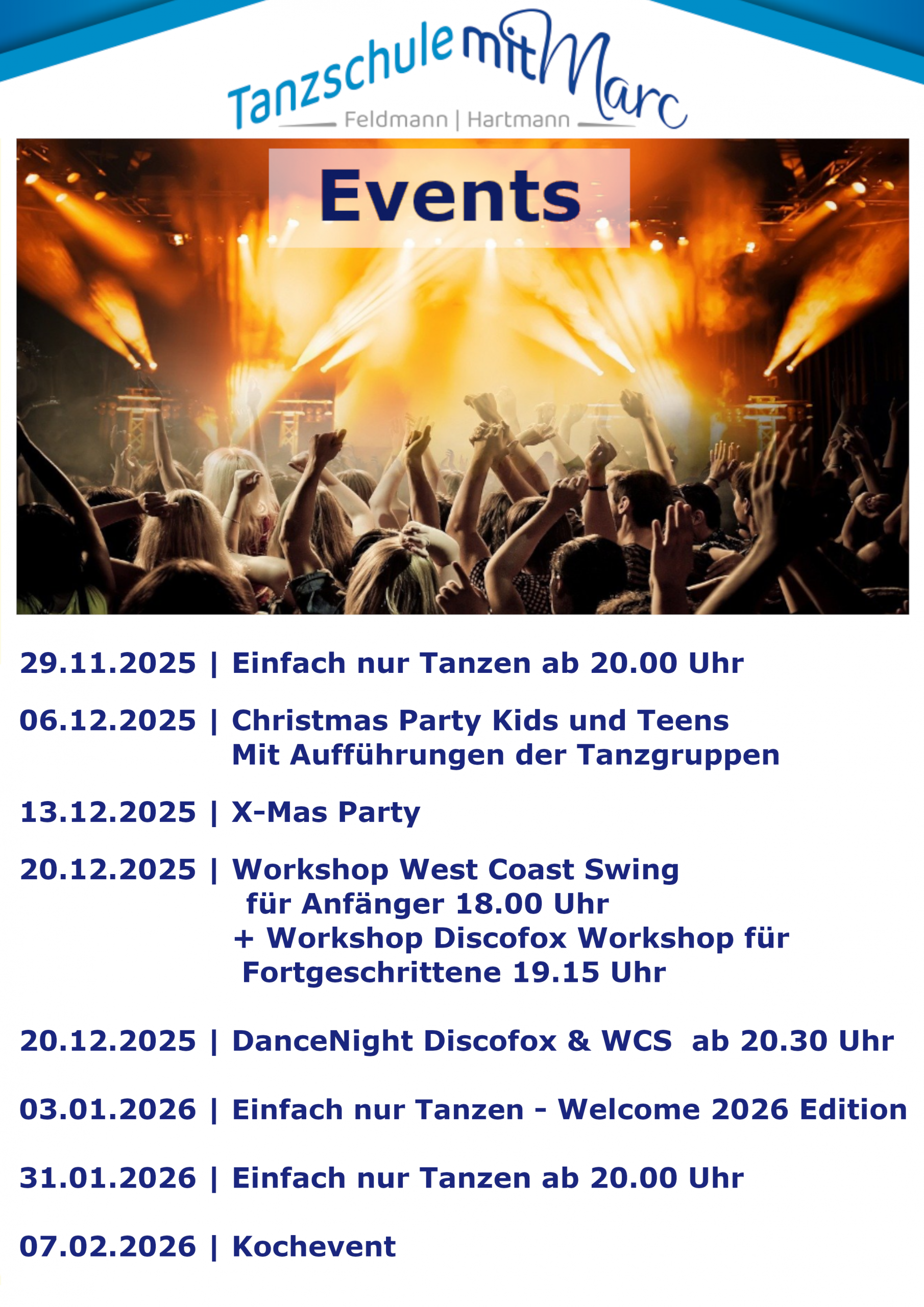 Hier seid Ihr richtig, wenn Ihr das Tanzen erlernen möchtet, Eure Tanzkenntnisse erweitern wollt oder einfach nur Spass bei unseren Tanzparties und Events haben wollt. Unser umfangreiches Angebot für alle Altersklassen bietet jedem etwas.